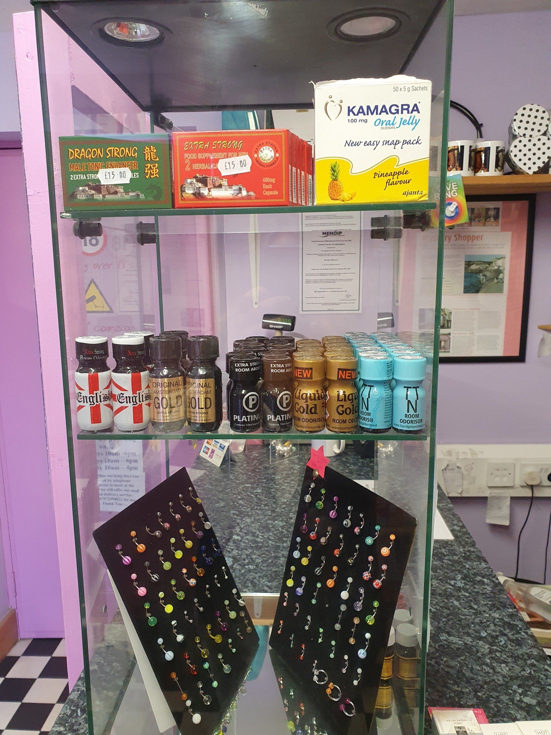 Our Male herbal viagra is very much in demand along with room odourisers in small and large bottles. We also have a selection of top shelf magazines by Score, Naughty neighbour, Escort and club to name a few and R18 hardcore DVDs (which can only be purchased through the shop). We have a range of sexy lingerie including babydolls, basques, corsets, bra and knicker sets, body stockings, stockings and suspenders and much more.